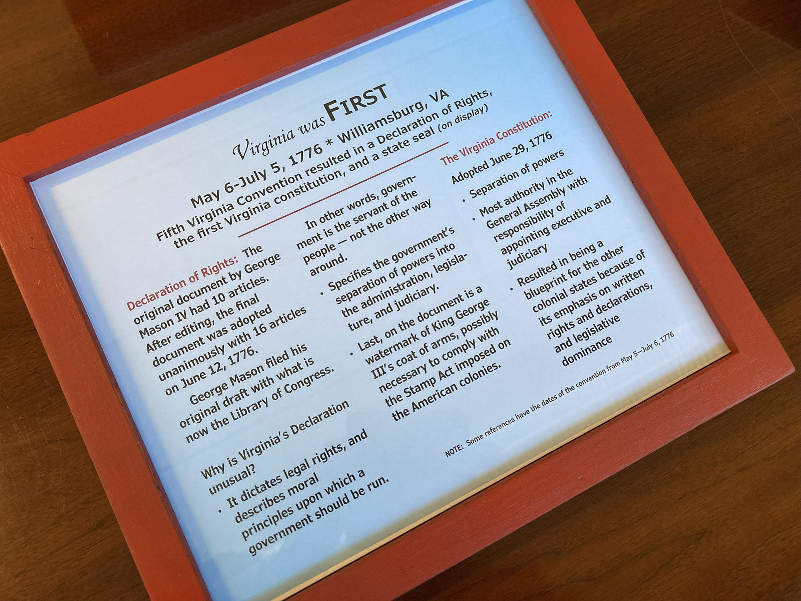 Our main 250th anniversary exhibit is "We Declare," an exploration of the Virginia Declaration of Rights, adopted June 12, 1776, and the Declaration of Independence, adopted 3 weeks later, and our responsibility to be informed citizens in modern America. One of the special artifacts is an original July 3, 1858 Harper's Weekly newspaper with a reprint of the signed Declaration of Independence. We surrounded the print with brief biographical sketches and photographs of the Virginia signers (see below in the Media Gallery).